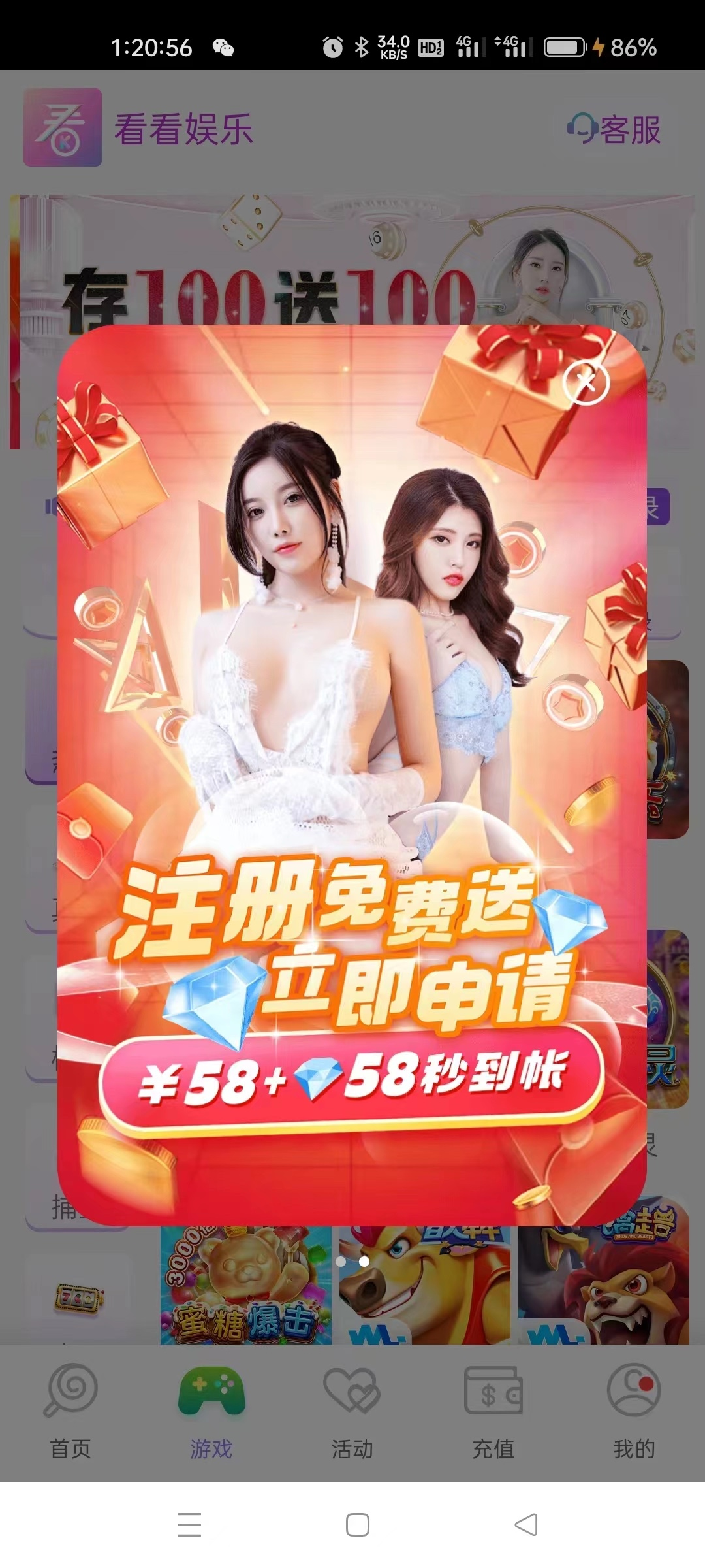 冲了100 领了158 打到700提现了